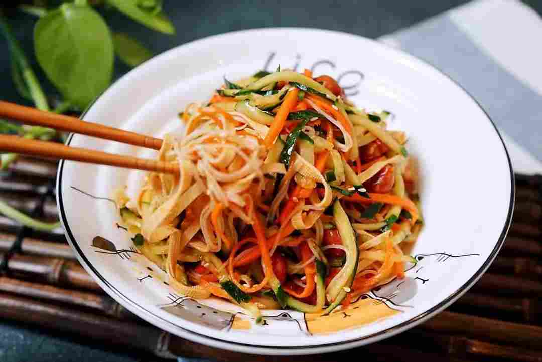 4、拌豆皮丝,除了这些蔬菜,还可以用西兰花、芹菜、芦笋、木耳、豇豆、莴苣等,味道都挺好;